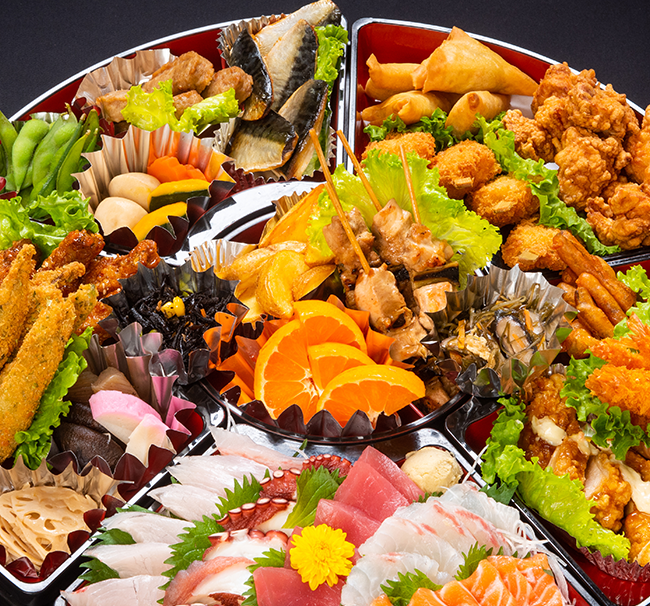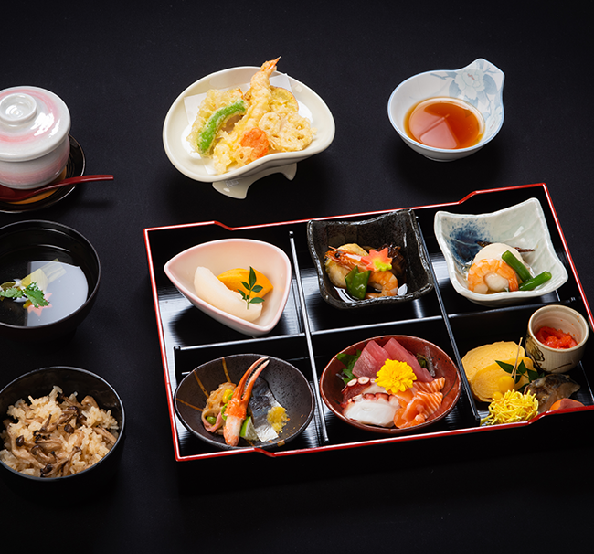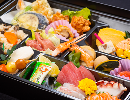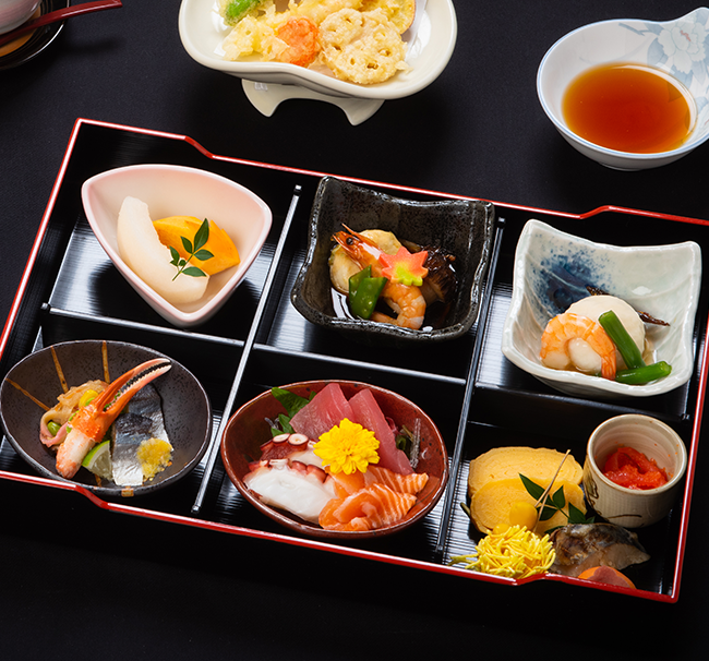 宴会、法事会席、お祝い会席、ダイニングとしての利用、法事用仕出し・弁当、会議用弁当、お祝い用仕出し・弁当、鉢盛、お寿司などお客様のニーズに合わせて柔軟に対応させていただいております。