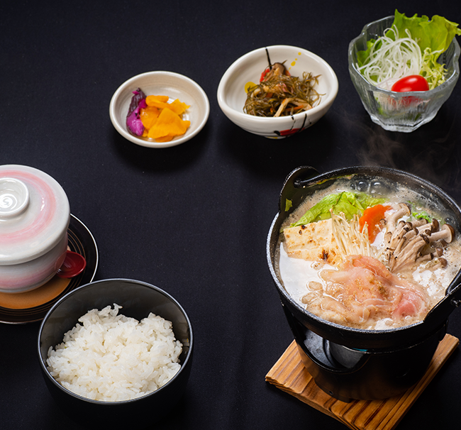 食材については、創業以来、市場に出向いて交渉して買い付けに行き、市場から届いた一流の素材を安く提供しております。また、産地に徹底的にこだわり、熊本県内の畜産農家より新鮮な食材のみを使用し、既製品は一切使用してません。必要であれば、仕入れ先に直接出向き、生産者の方の思いを聞き、創っている環境を体感したうえで仕入れを行っております。季節ごとに旬の食材を使ったオリジナルメニューや、出汁と素材を活かし人手間をかけたお料理をご提供させていただいております。